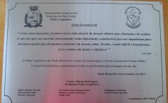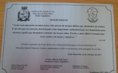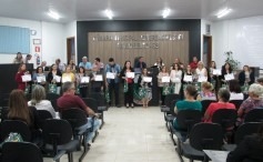 A Câmara de Vereadores realizou ás 19 horas desta segunda feira (16-10) sessão solene em homenagem aos professores que trabalham e também os que já trabalharam no Município. Foram homenageadas a Escola Municipal de Educação Infantil Monteiro Lobato, Escola Municipal de Ensino Fundamental Valério Schillo e Escola Estadual de Ensino Médio Coronel Raul Barbosa. Com a presença do prefeito municipal Pedro Lorenzi, que está de férias e já foi professor no município, vice-prefeito e prefeito em exercício Moisés Schillo, secretários, professores ainda atuantes e aposentados e população. Os vereadores homenagearam os mestres da educação pelo dia 15 de outubro data a eles dedicada e no final entregaram uma lembrança da Câmara de Vereadores.