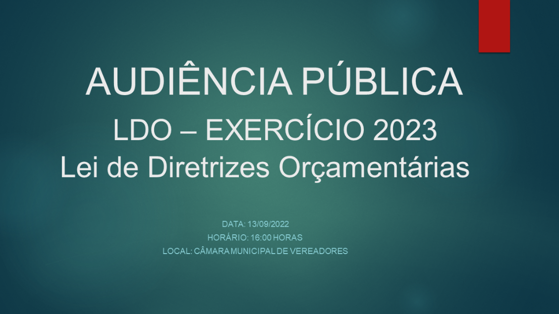 A audiência realizar-se-á na Comissão Mista Permanente na Câmara Municipal de Vereadores de Paulo Bento – RS, no dia 13 de Setembro de 2022, às 16:00 horas.