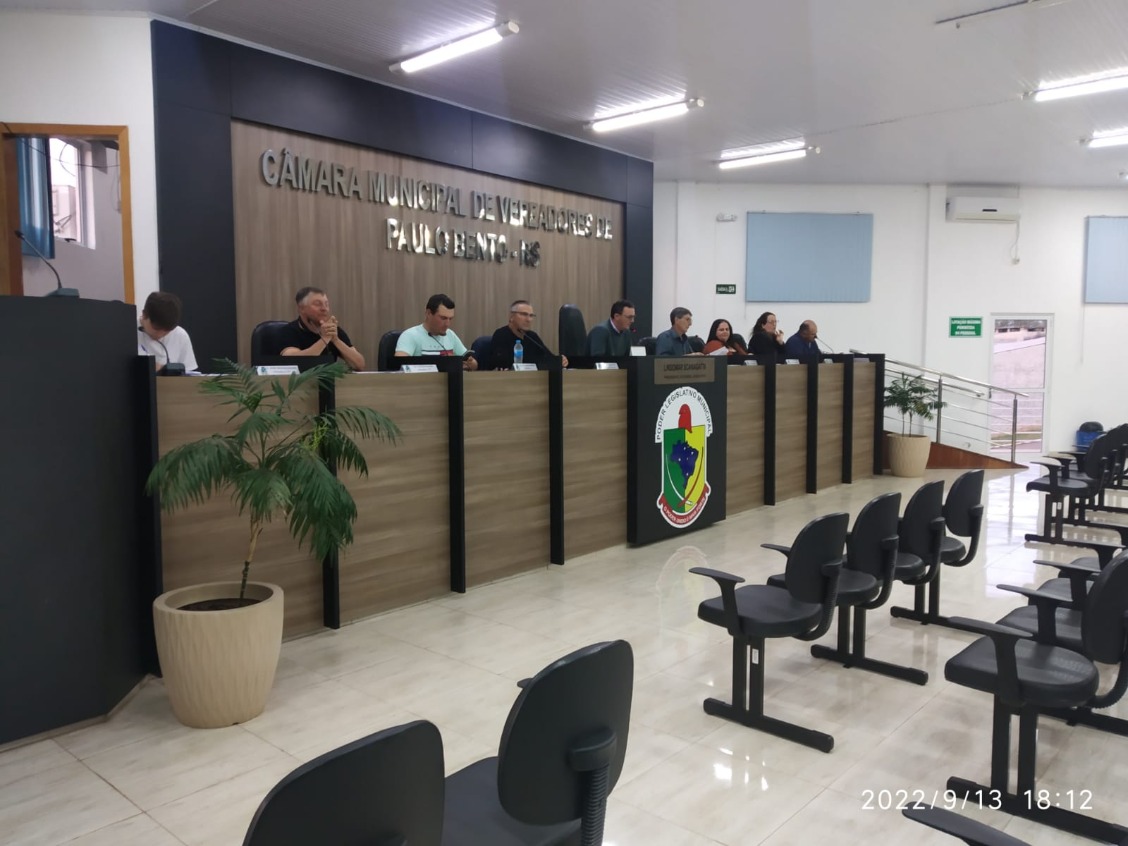 Os vereadores do Município de Paulo Bento reuniram-se em sessão Plenária Ordinária no último dia 13 de setembro, na sala de reuniões do poder Legislativo, para discutir e votar 5 projetos de lei, um requerimento e uma moção de pesar. Todos aprovados. No mesmo dia assumiu cadeira a Vereadora suplente do Partido dos Trabalhadores Jaíne Magnaguagno e a Vereadora suplente do Partido dos Republicanos Elaine Mascarelo.
