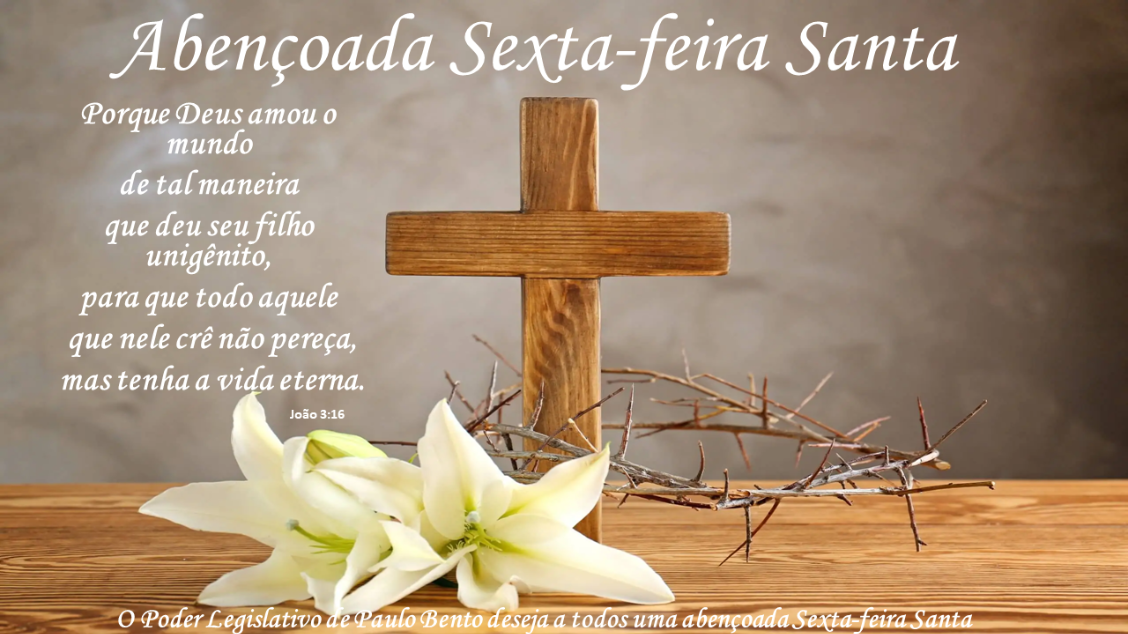 O Presidente do Poder Legislativo Giovani Fiorentin juntamente com os demais vereadores desejam a todos uma Sexta-feira Santa abençoada
