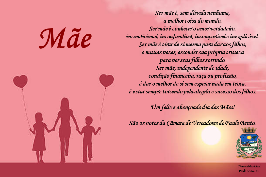 São os votos do presidente do Poder Legislativo Giovani Fiorentin juntamente com os demais vereadores a todas as mães.