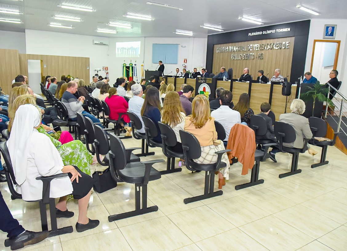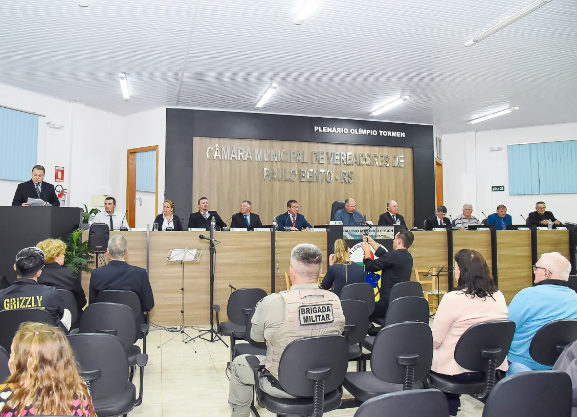 O Presidente do Poder Legislativo, Vereador Daltro Moacir Utteich presidiu a Sessão Solene, em que foram prestadas homenagens à memória do Senhor Olímpio Tormen, que fora o 1º Presidente da Câmara Municipal de Vereadores de Paulo Bento – RS.