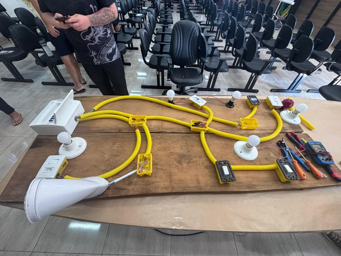 Além das atividades práticas, o curso também abordou normas de segurança, uso correto de equipamentos e ferramentas, bem como orientações importantes para evitar acidentes envolvendo energia elétrica.