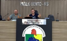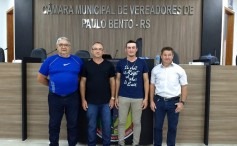 Os vereadores de Paulo Bento reuniram-se segunda feira (09 12) na sala de reuniões da Câmara de Vereadores para a última sessão ordinária do ano de 2019. Na ocasião além de outros projetos também foi eleita à nova mesa diretora para o ano de 2020. Ficando assim composta: Presidente Valdir Otto (PT), Vice-presidente: Giovani Fiorentin (DEM), 1º Secretário: Carlos Alberto Dall Agnol (PT) e 2º Secretário: Selvino Giareton (Republicanos).