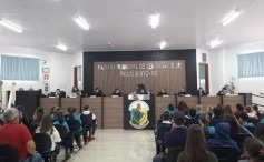 Com o espaço da Câmara de Vereadores totalmente tomado pela população especialmente escolar, foram apresentados, votados e aprovados 12 projetos dos vereadores mirins. A Câmara de Vereadores parabeniza a todos eles pela dedicação e empenho que obtiveram nesta legislatura.
